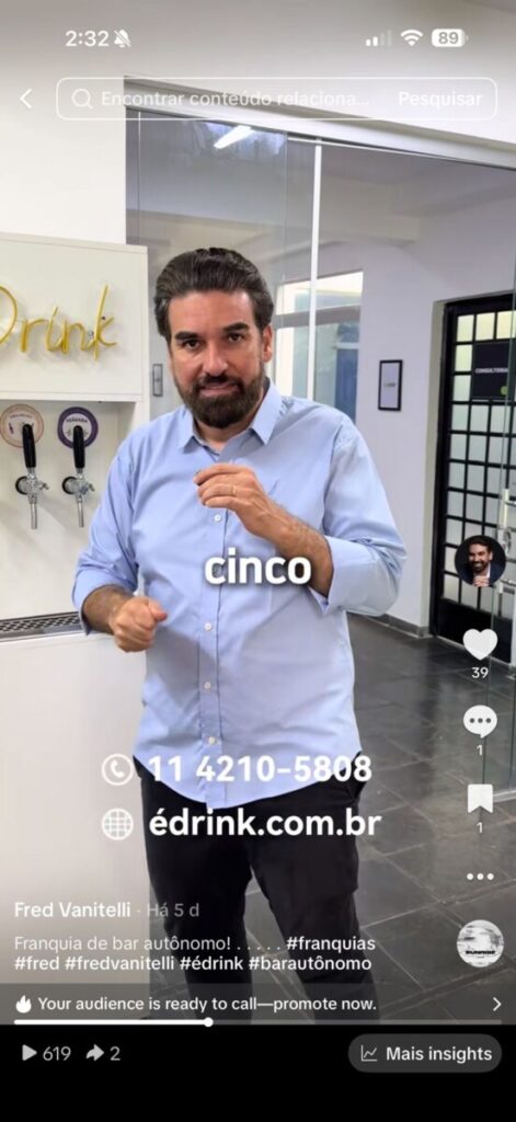 Com mais de 250 mil seguidores, atuação reconhecida no segmento de empreendedorismo e franquias e uma comunicação direta, didática e acessível, Fred conecta conhecimento prático de negócios com alcance e credibilidade.